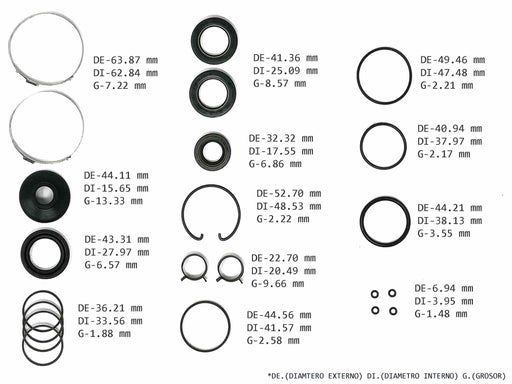 Kits, juegos, sellos ligas, retenes para dirección hidráulica mecánica o electro asistida (EPS EHPS EPAS ). Bombas y cremalleras completas, nuevas y re-manufacturadas.