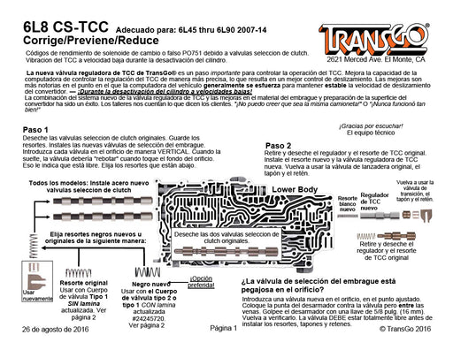 TRANSGO 2 VALVULAS SELECTORAS Y 1 TCC 6L45 6L50 6L80 6L90 CORRIGE FUNCIONAMIENTO DE SOLENOIDES O EL FALSO CODIGO PO751 POR VALVULAS ATASCADAS.Trans...